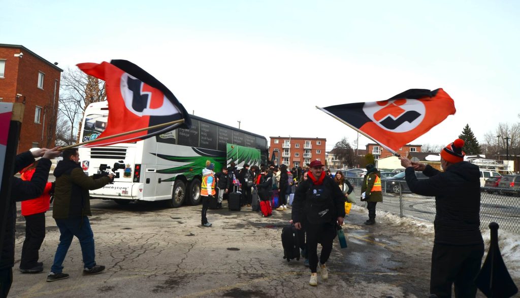 L’arrivée des athlètes du bloc 2 à leur site d’hébergement à l’Académie Sainte-Thérèse.